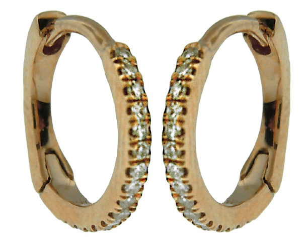 14kt rose gold diamond hoop earrings.