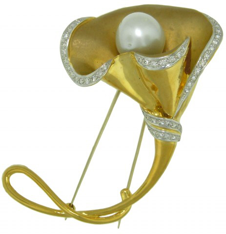 18kt yellow gold diamond & pearl pin