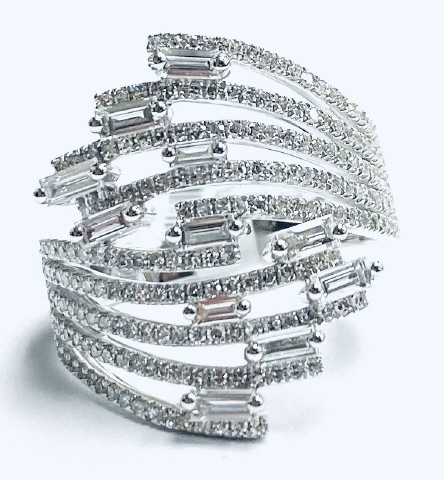 14kt white gold round and baguette diamond ring.