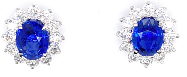Oval Sapphires 2/5.00tw Round Diamonds 24/2.11tw G-H/VS2-SI1