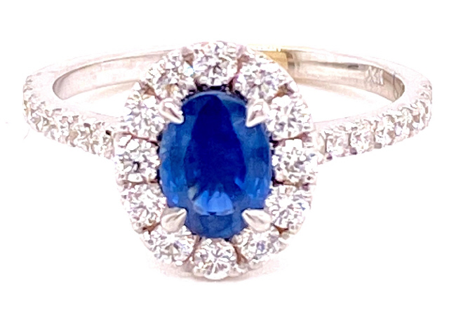 14kt white gold oval sapphire and diamond ring
