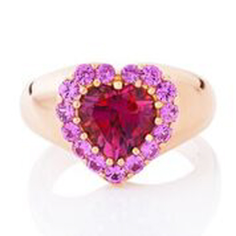 18kt rose gold pink tourmaline and pink sapphire heart ring.
