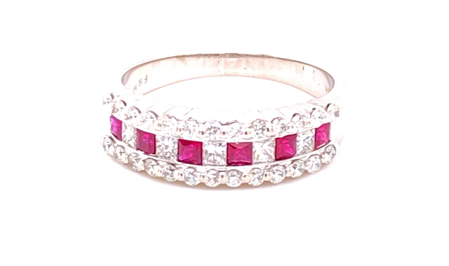 Diamonds=31/.75tw+/- F-G VS Rubies=6/.30tw+/-