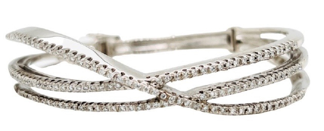 18kt white gold three-row criss cross diamond bangle bracelet