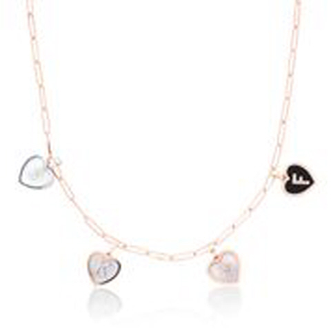 14kt rose gold pink MOP heart diamond "O" pendant. Diamonds 12/.04tw G-H/VS2-SI1. Beaded Edge