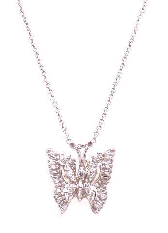14kt white gold diamond butterfly pendant and chain