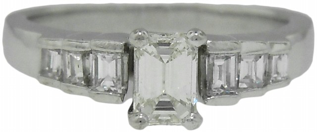 Emerald Cut Diamond 1/.45ct K-L/VS Baguette Diamonds 6/.25tw+/-