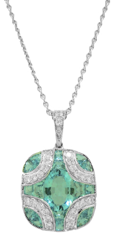 18kt white gold aqua and diamond pendant with chain