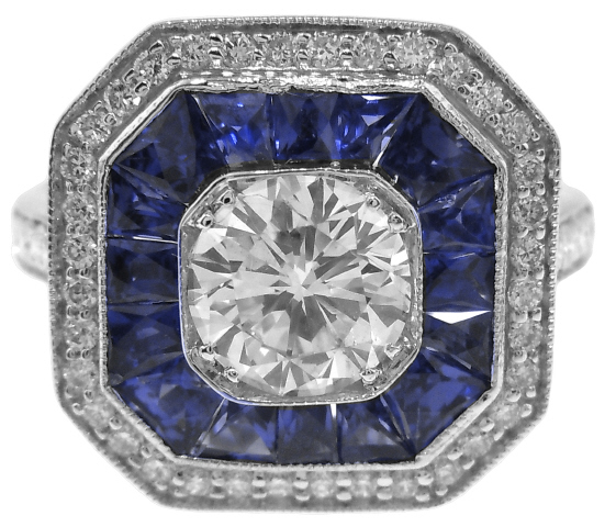 Round Diamond 1.03ct J/SI-1 EGL Report #US 45491510D French Cut Sapphires 16/1.50 tw+/- Round Diamonds 44/.30 tw+/- F-G/VS
