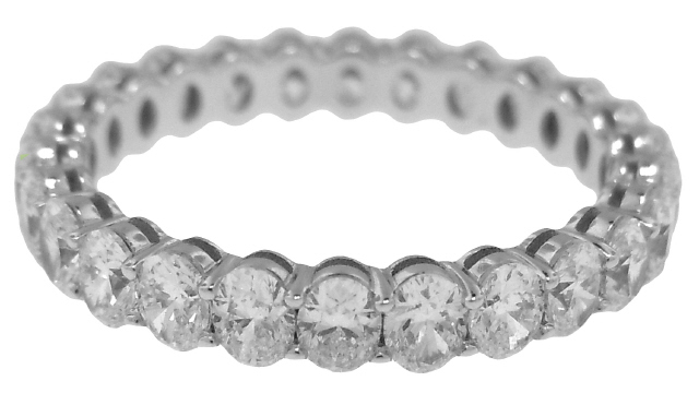 18kt white gold oval diamond eternity band.