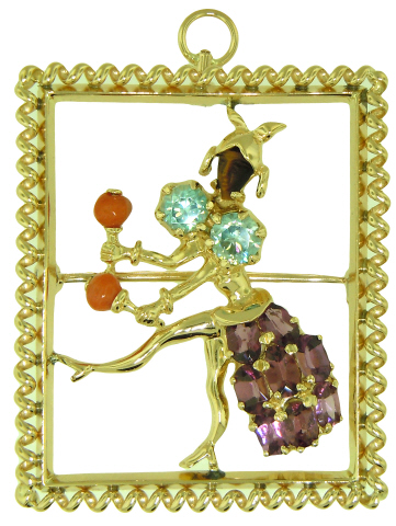 14kt yellow gold multi-color semi-precious stone pin/pendant