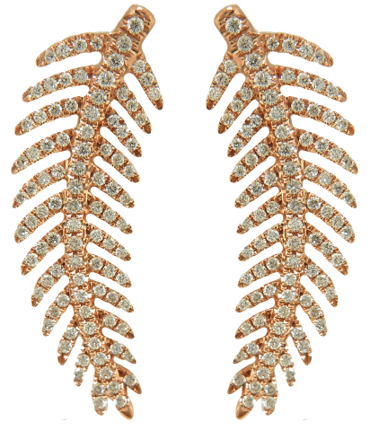 14kt rose gold diamond feather earrings with post and clutch