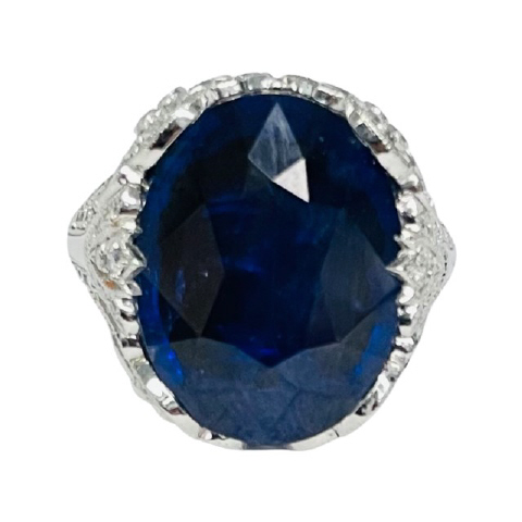 Platinum ring with oval sapphire 10.52cts and diamonds