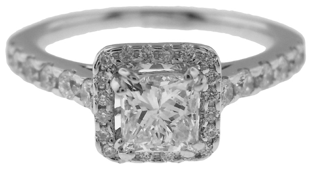 14kt white gold princess cut diamond engagement ring .60ct D SI2 GIA