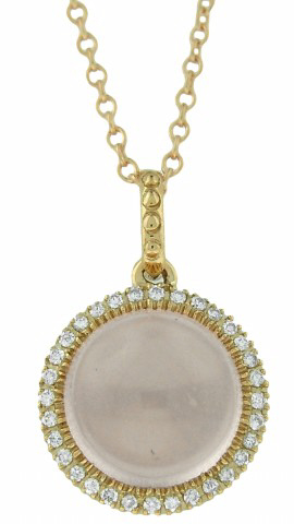 18kt rose gold cabachon morganite diamond pendant with chain
