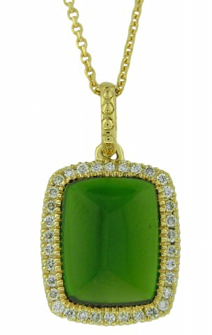 18kt yellow gold chrome diopside and diamond pendant