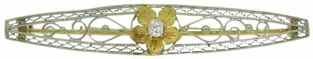 14kt white and yellow gold antique style bar pin