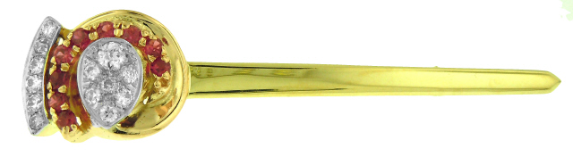 14kt yellow and rose gold antique design diamond and ruby pin