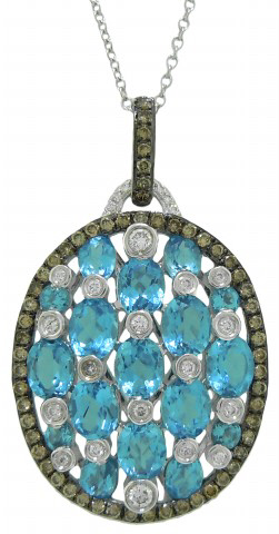 Blue topaz 17/5.04tw Brown diamonds 58/0.50tw White diamonds 26/0.18tw