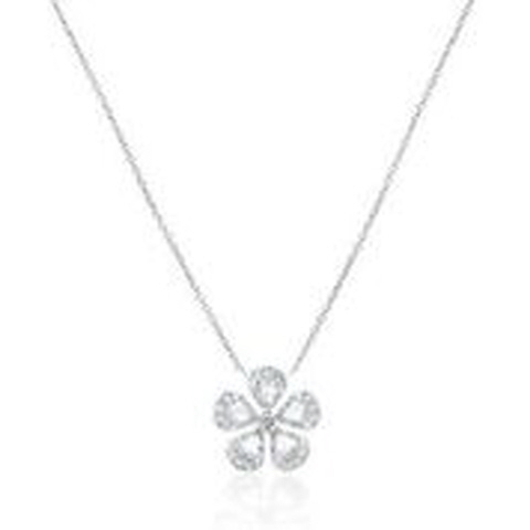 18kt white gold rose cut and round diamond flower pendant with chain.