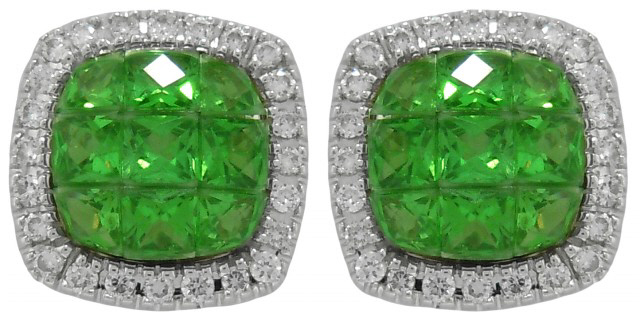 18kt white gold tsavorite and diamond earrings