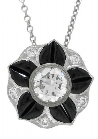 18kt white gold black onyx and diamond pendant with chain