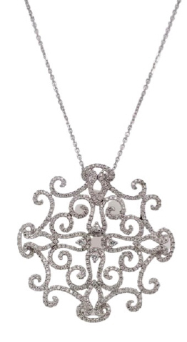 18kt white gold open design diamond pendant
