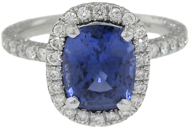 Cushion sapphire=2.92cts D=160/1.28tw G-H VS