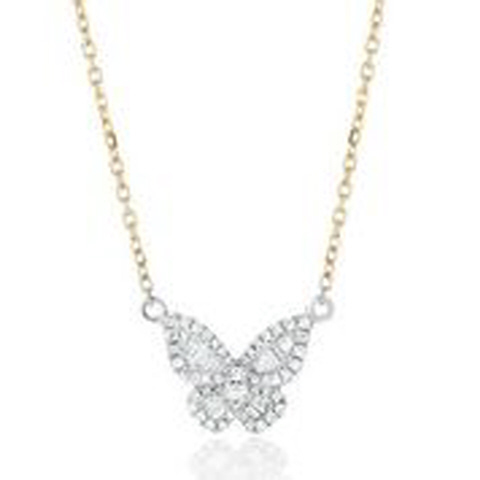 18kt two-tone mini diamond butterfly pendant with chain.