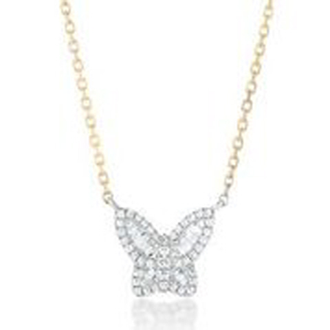 18kt two-tone petite diamond butterfly pendant with chain.