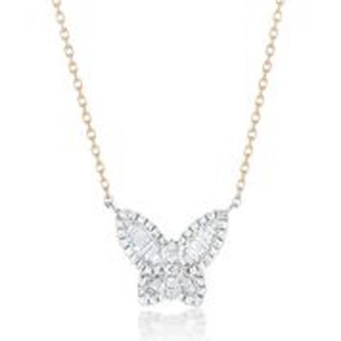18kt two-tone medium diamond butterfly pendant with chain.