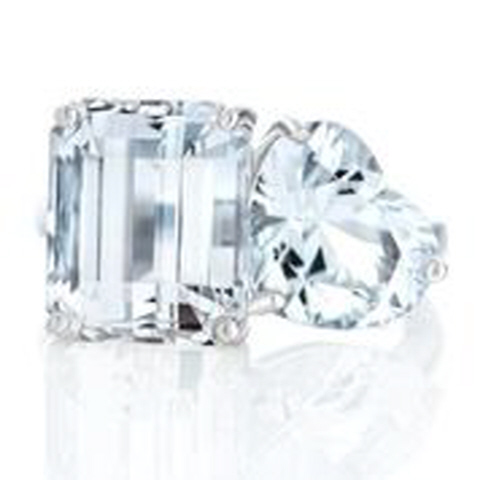 14kt white gold emerald cut and heart shape white topaz ring