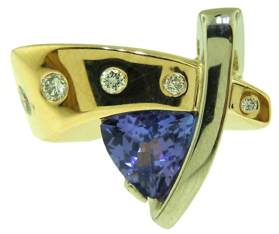 14kt yellow gold tanzanite and diamond ring