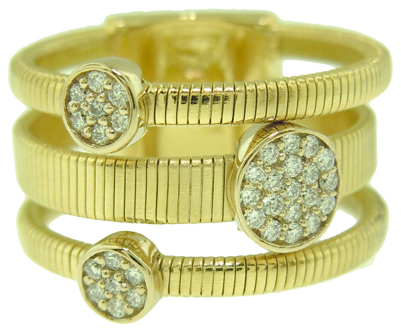 18kt yellow gold 3 row diamond element ring