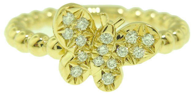 14kt yellow gold butterfly diamond ring