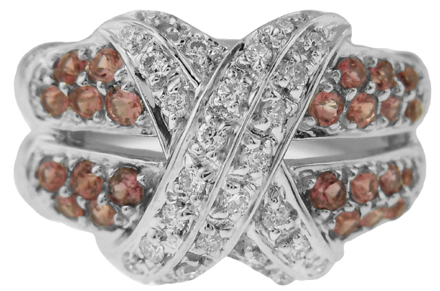 14kt white gold diamond and pink sapphire band