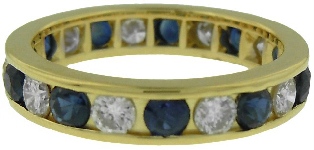 14kt yellow gold diamond and sapphire channel band