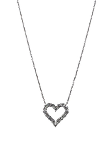 18kt white gold shared prong open heart diamond pendant with chain