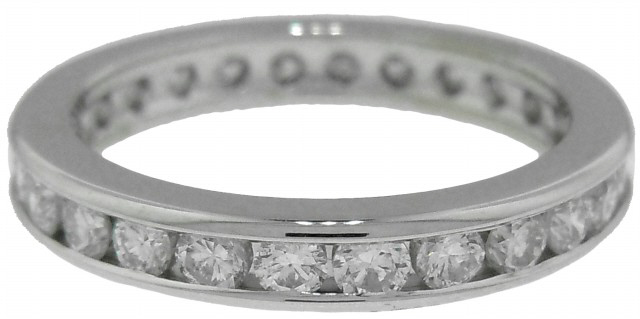 14kt white gold channel set diamond eternity band.