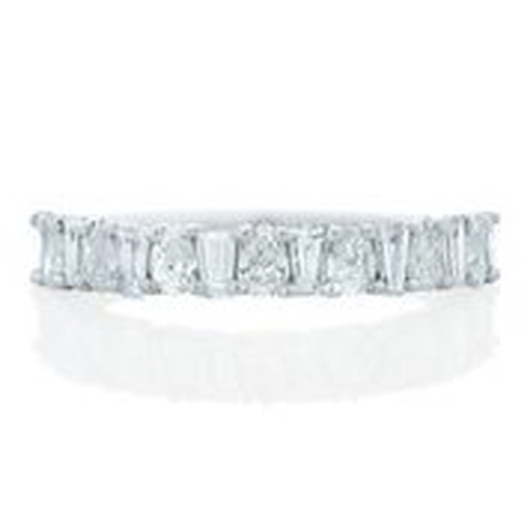 18kt white gold tapered baguette and pear shape diamond band.