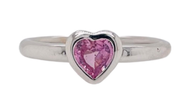 18kt white gold pink sapphire heart pinky ring