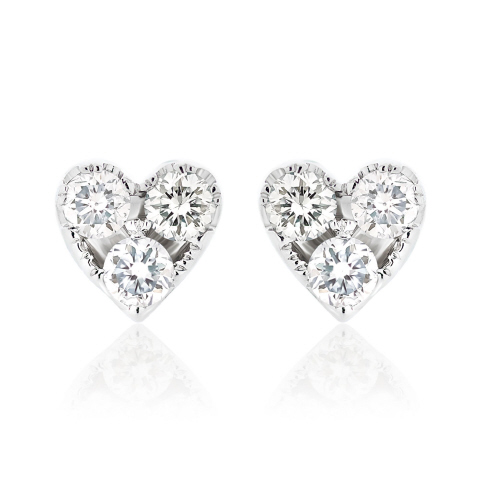 14kt white gold diamond heart earrings.