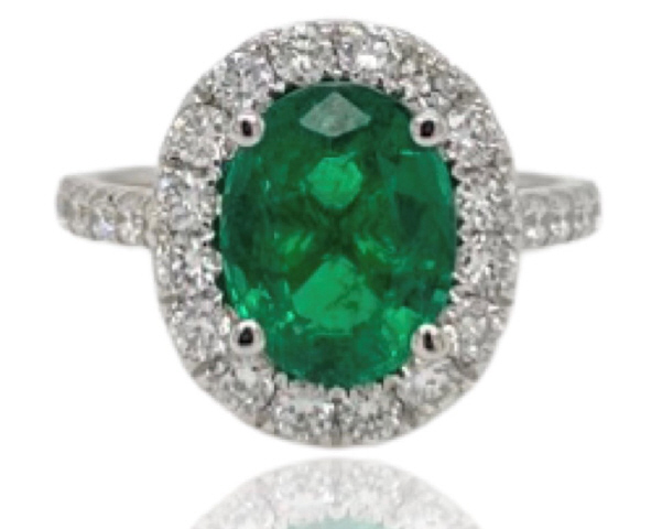Oval emerald 2.55 ct 10.28 x 8.11 x 4.97mm GIA Report #2215685145 Round diamonds 30/0.98tw G-H/VS2-SI1