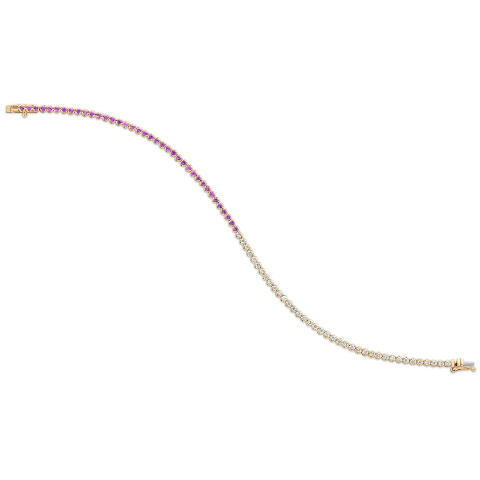 14kt yellow gold pink sapphire and diamond tennis bracelet.