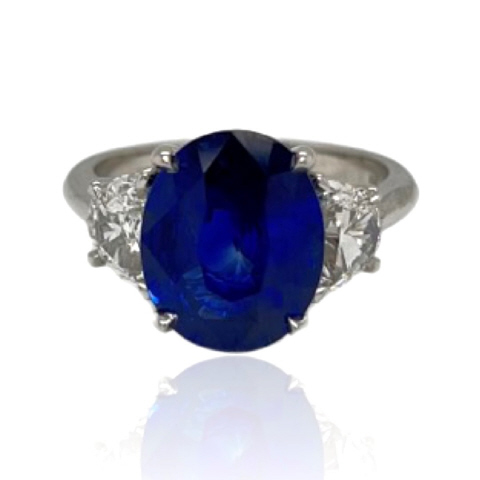 Oval sapphire 4.79ct GIA Report#5221137486 Half moon diamonds 2/1.02tw F-G/VS