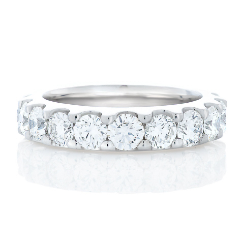 Platinum shared prong diamond eternity band.