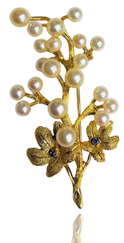 14kt yellow gold pearl and sapphire branch pin