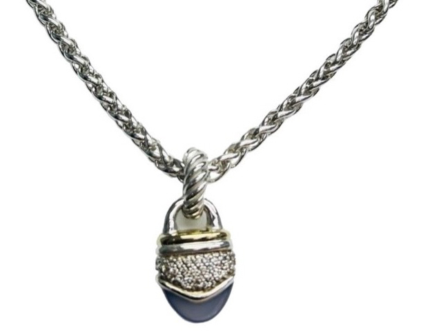 Silver and 18kt yellow gold David Yurman diamond and blue chalcedony necklace