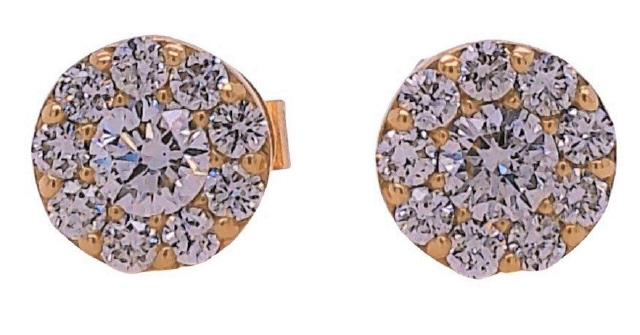 14kt yellow gold diamond cluster earrings.
