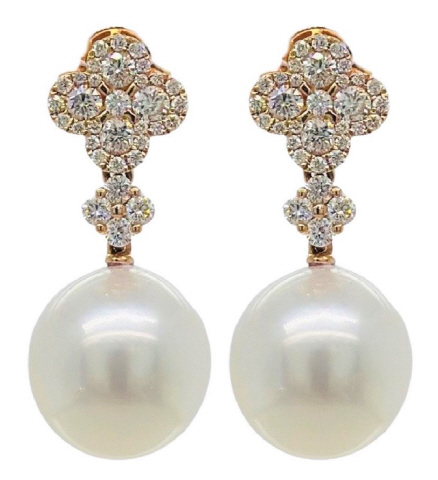 18kt Rose Gold South Sea peal and diamond dangle earrings